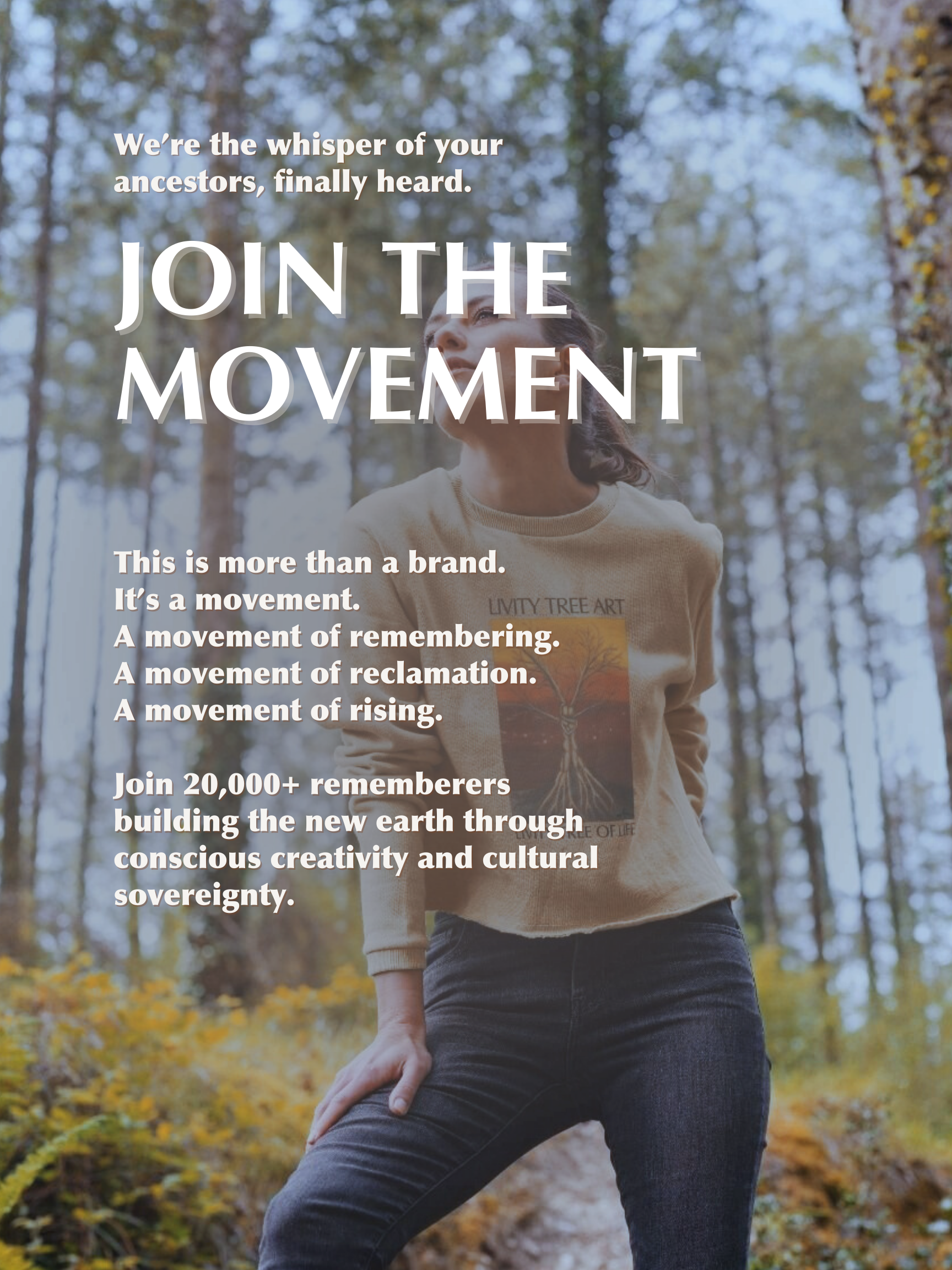 At Livity Tree Art, we help you reconnect, reclaim, and rise—through powerful, soul-rooted art and apparel that bridges the ancestral past with a future of sovereignty, healing, and purpose.